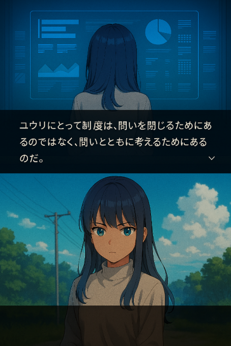 ユウリが問いを開いても、制度が問いを閉じるのだ。